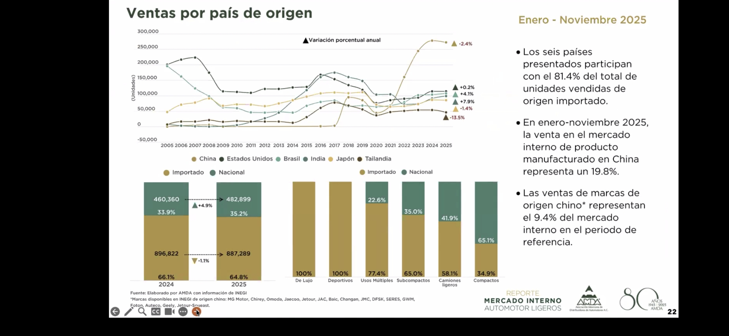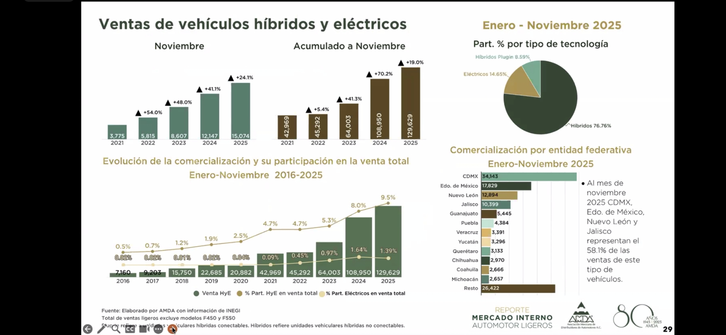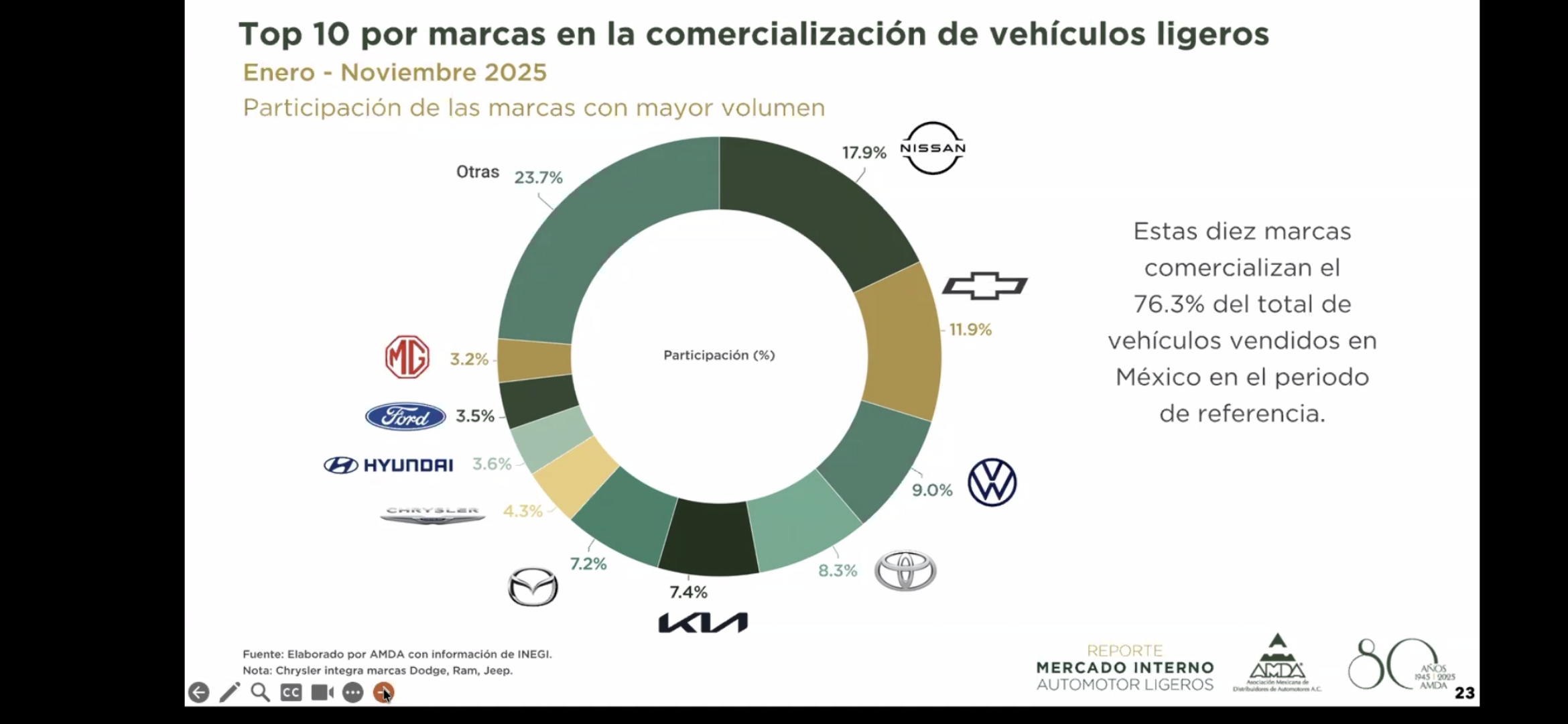 En el acumulado de enero a noviembre se han vendido más de 1.3 millones de unidades, cifra que refleja un crecimiento de 1.0% respecto a lo reportado en el mismo periodo de 2024, también coloca a 2025 como el