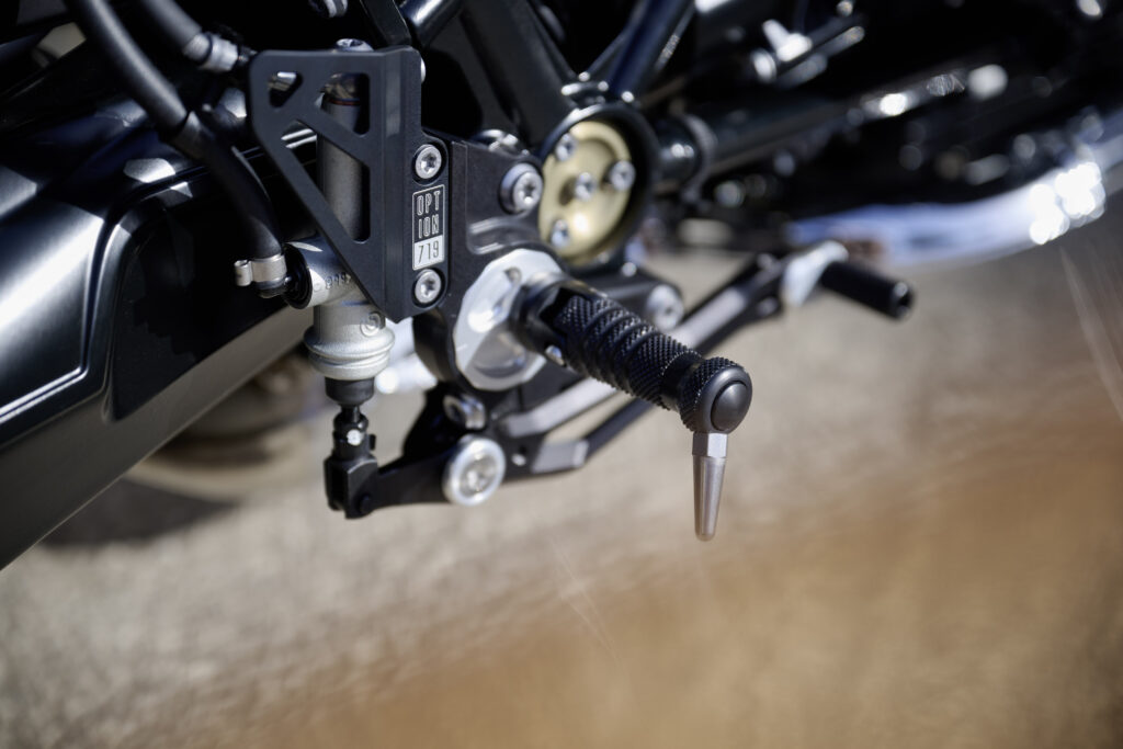 La BMW R nineT 100 Years incluye rines Option 719 Classic con aros anodizados en color negro, el paquete de piezas fresadas Option 719 Shadow, así como el paquete de piezas fresadas Option 719 Shadow II.