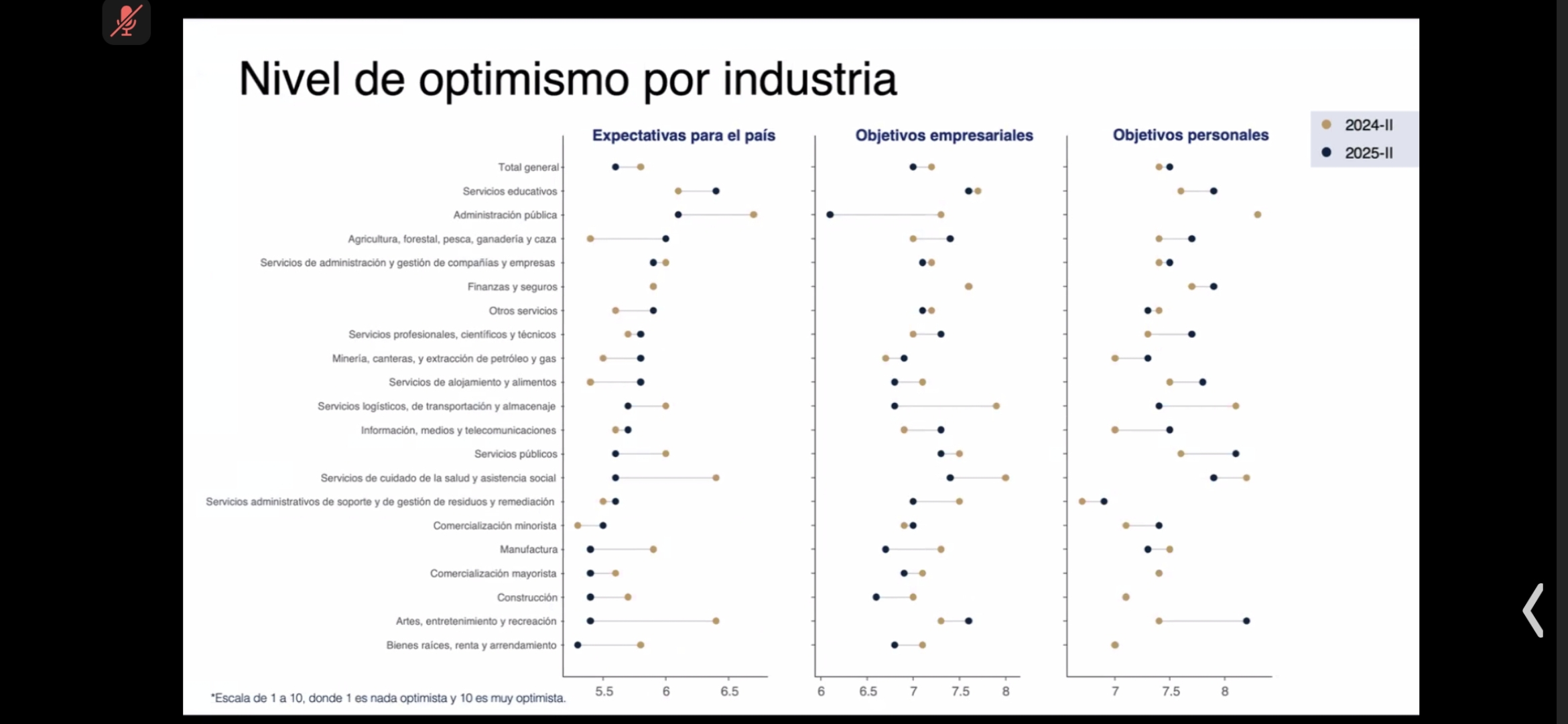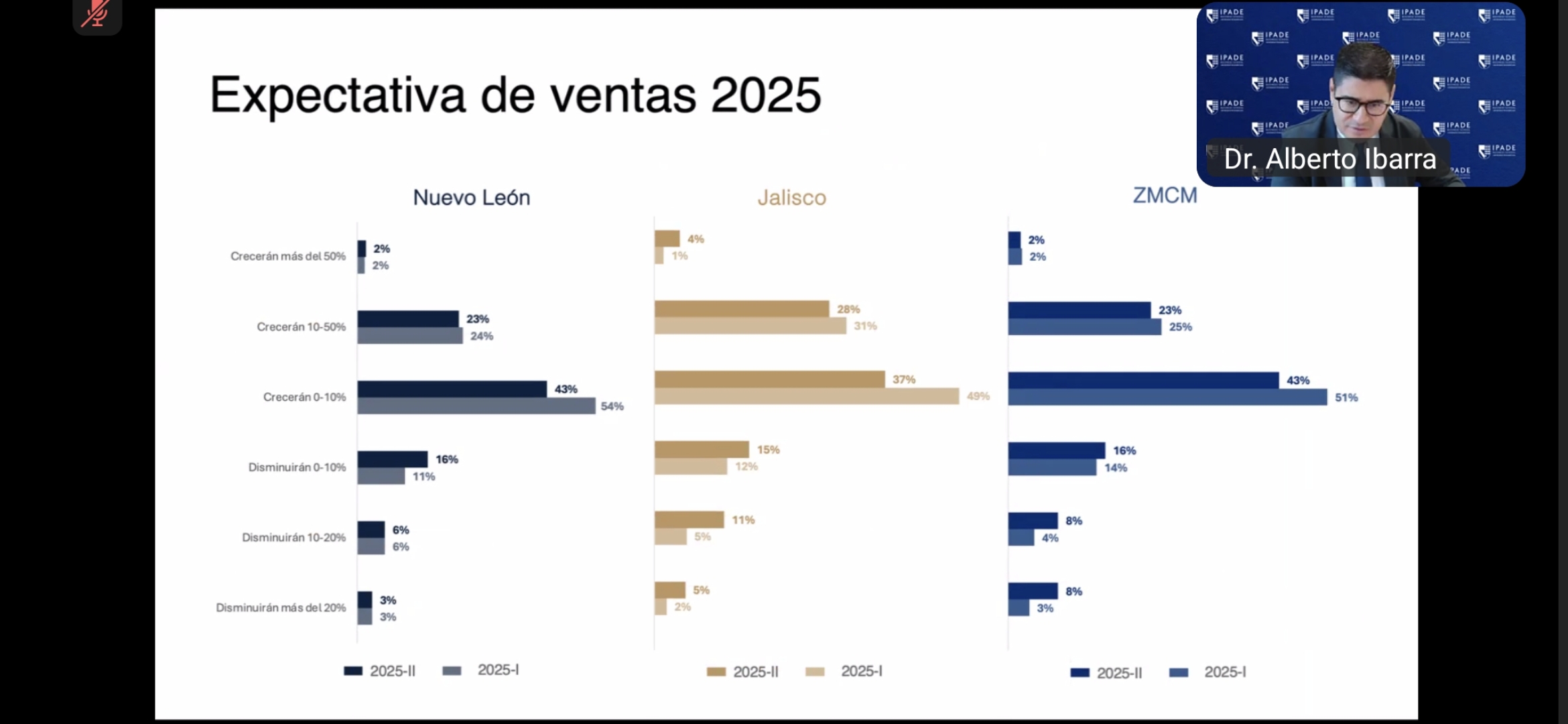 De acuerdo con catedráticos del IPADE, al inicio del año, el 77% de los encuestados esperaba un crecimiento de ventas, ahora, este dato bajó al 66%. La brecha entre el optimismo sobre el cumplimiento de objetivos personales y empresariales aumentó.