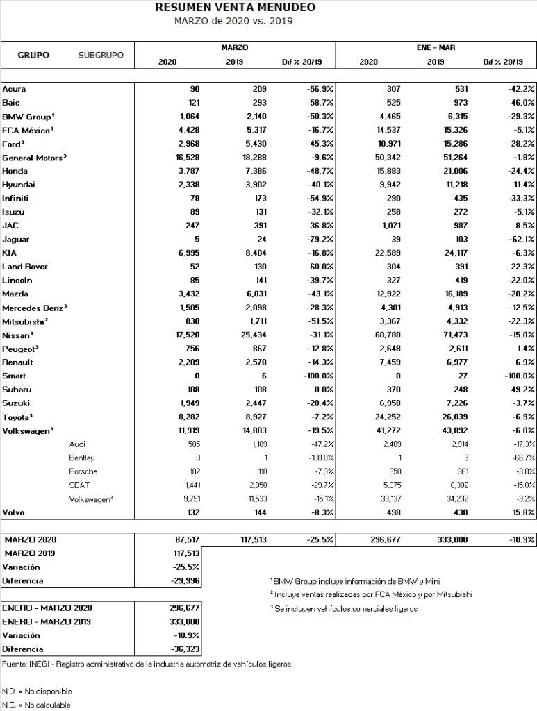 Caen venta de autos 25.5%: INEGI