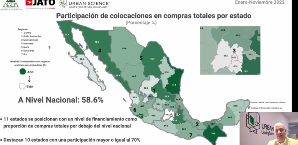 Así es que actualmente de las ventas totales de vehículos nuevos, el financiamiento ha participado con el 58.6% durante el periodo enero-noviembre del presente año.