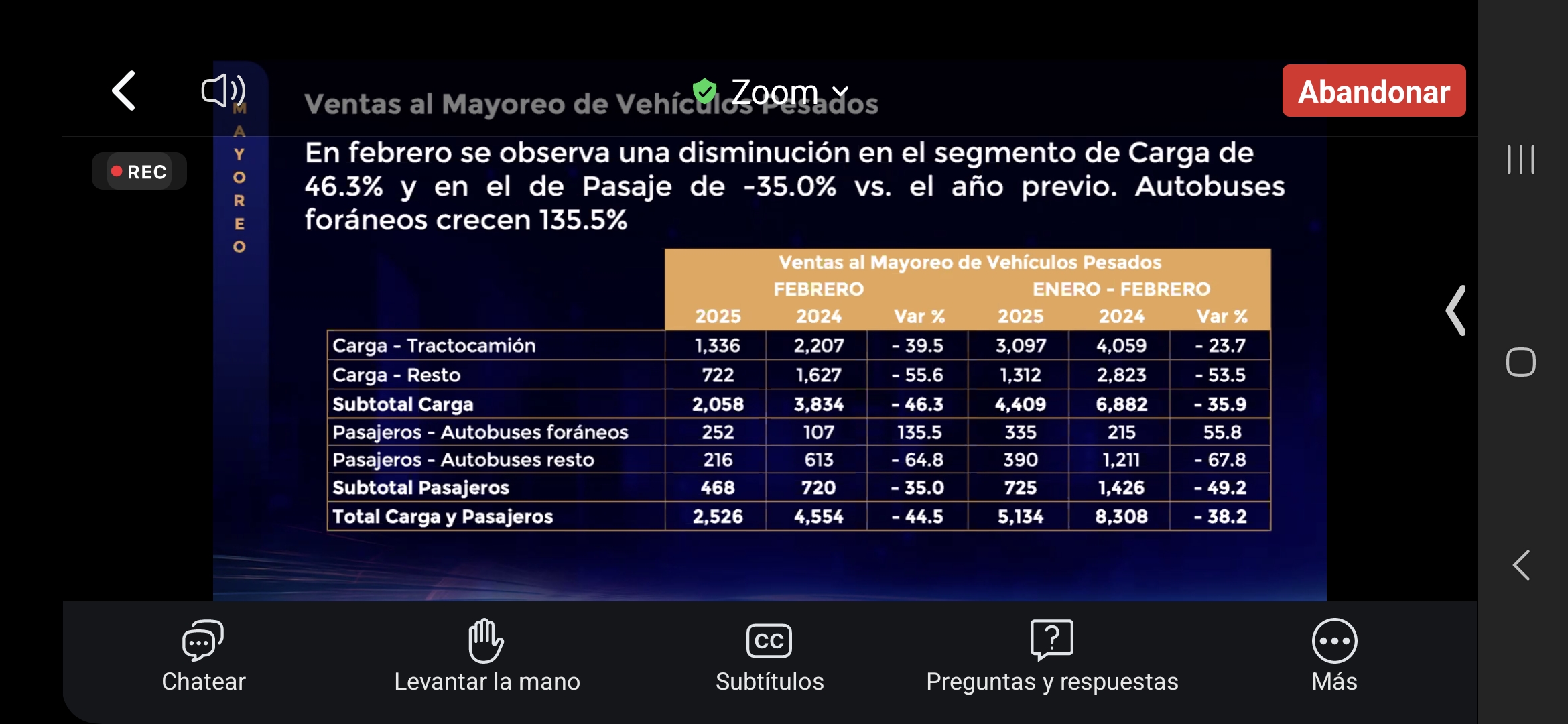 - La baja observada en ventas al mayoreo de vehículos pesados es transitoria y paulatinamente recobrará vigor.
