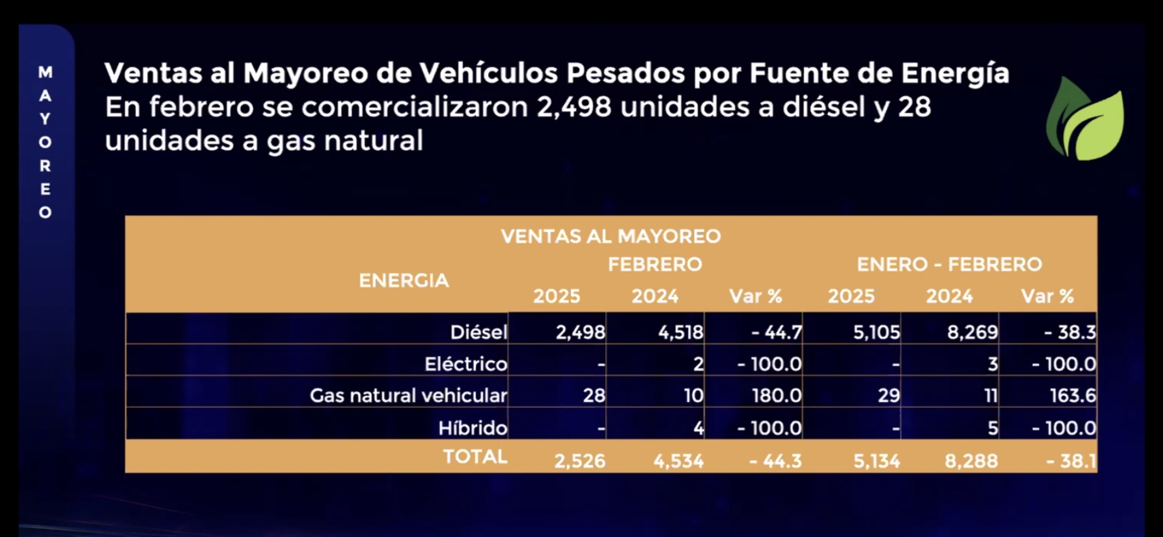 Al concluir el segundo mes del año, se reportan disminuciones en las ventas al mayoreo de vehículos pesados de 44.5%, al totalizar en 2 mil 526 unidades; por otra parte, la disminución en el acumulado bimestral fue de 38.2%, con ventas de 5 mil 134 vehículos de carga y pasaje.