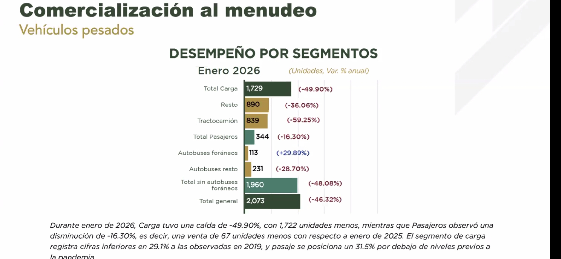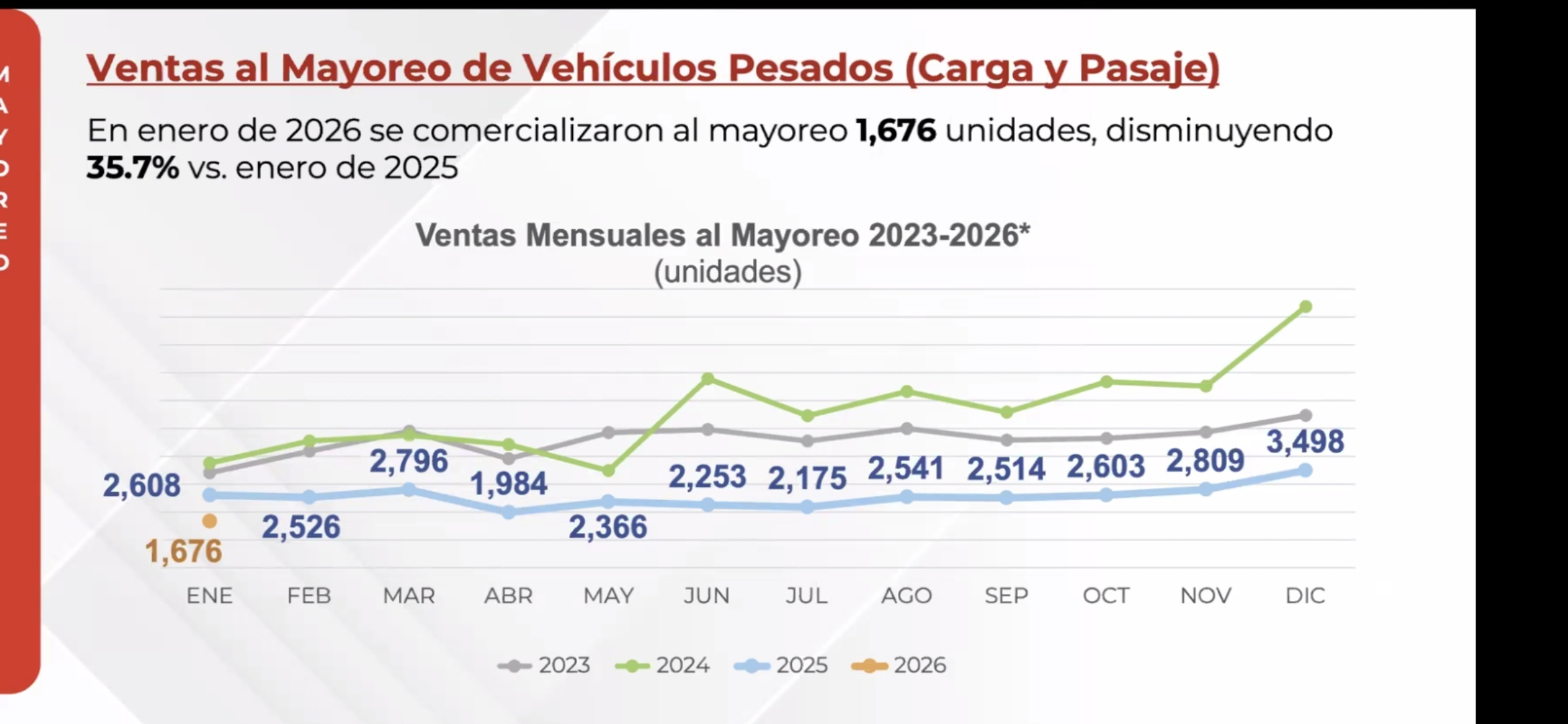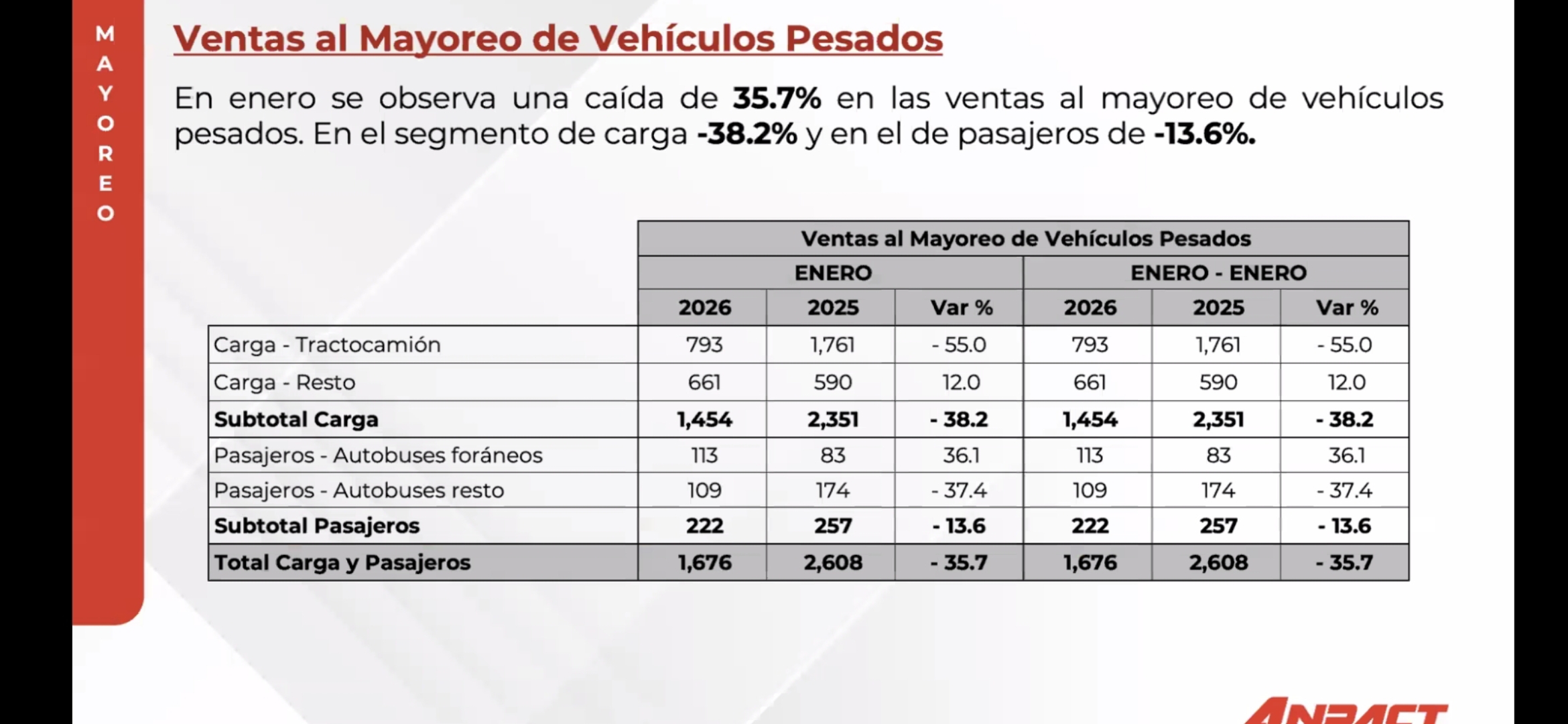 Desplome de 35.7% en la venta al mayoreo de vehículos pesados en México