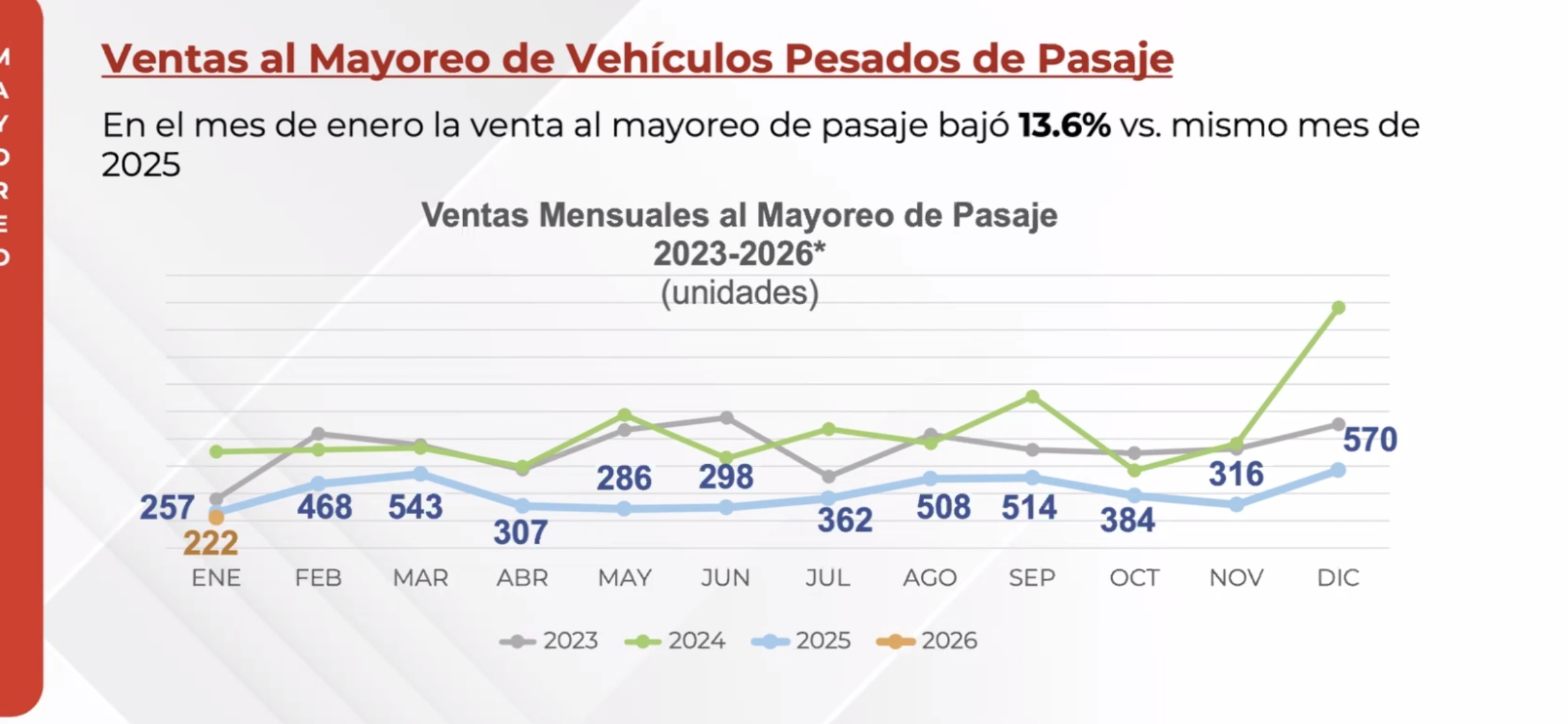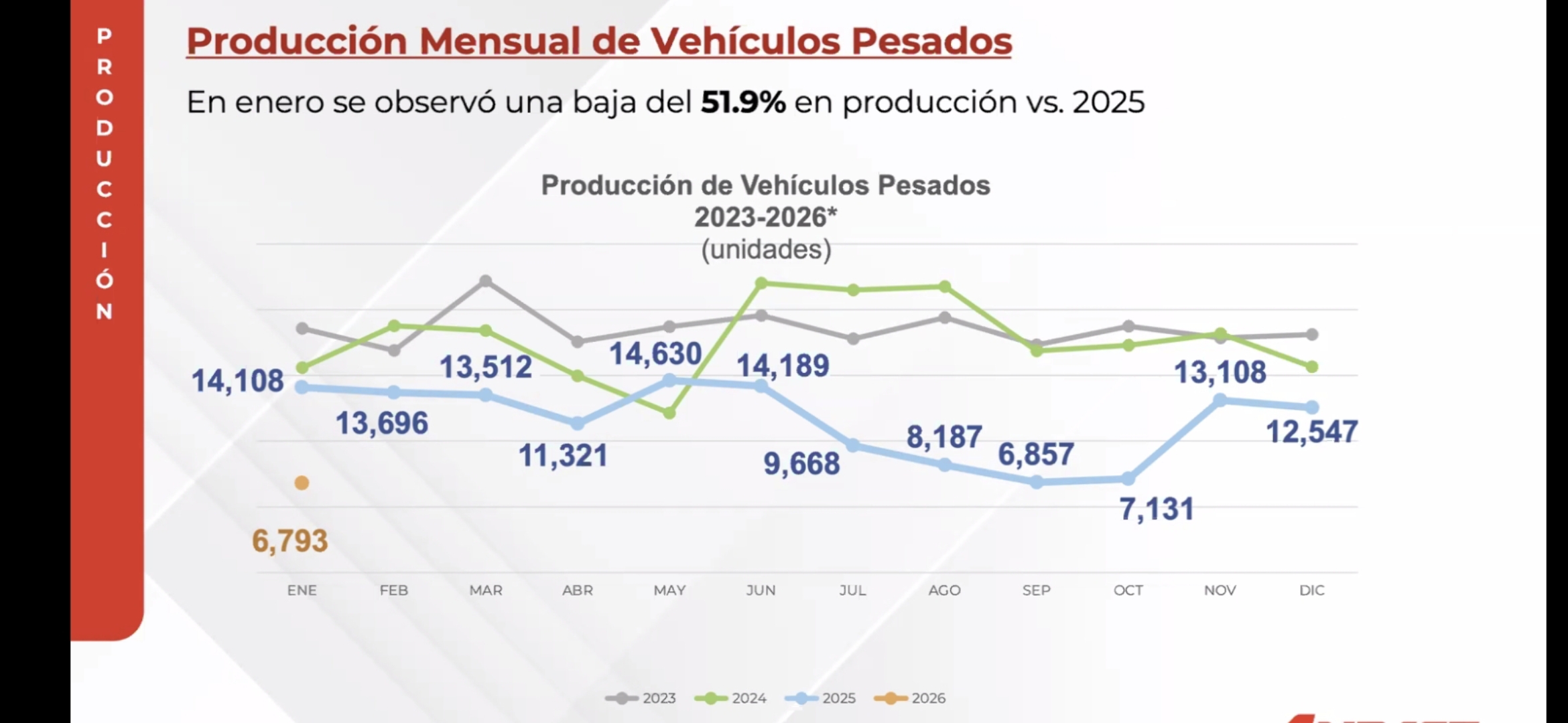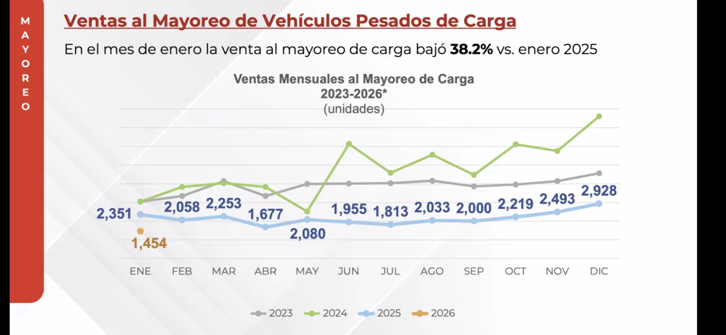 Desplome de 35.7% en la venta al mayoreo de vehículos pesados en México