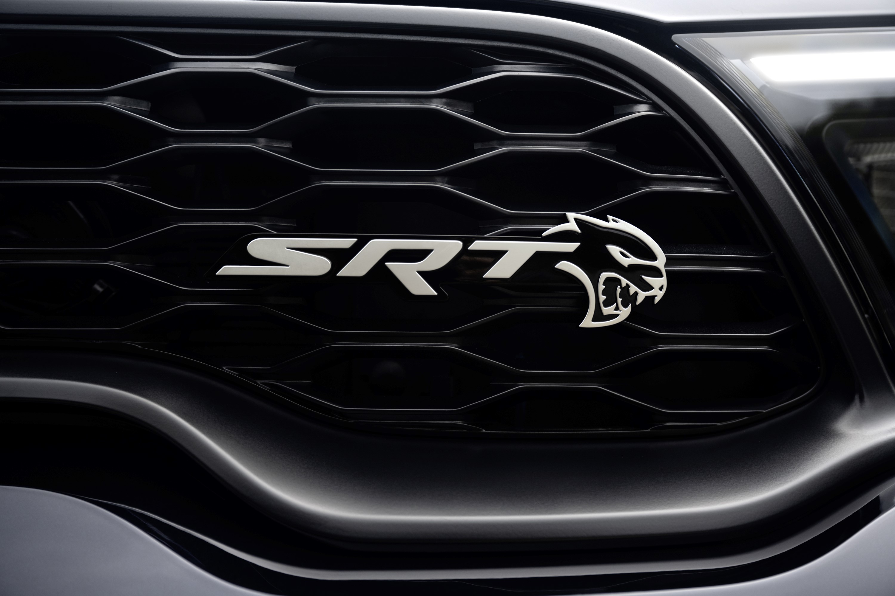 El exclusivo cofre SRT en color negro, cuenta con conducto de aire central y dos extractores de calor, mientras que el alerón trasero incrementa la carga aerodinámica en 400 por ciento (65 kg @ 290 km/h). Los rines de aluminio Forged Y-Spoke Lights Out son de 20 pulgadas, montados en unas llantas de alto desempeño Pirelli 295/45 ZR20.