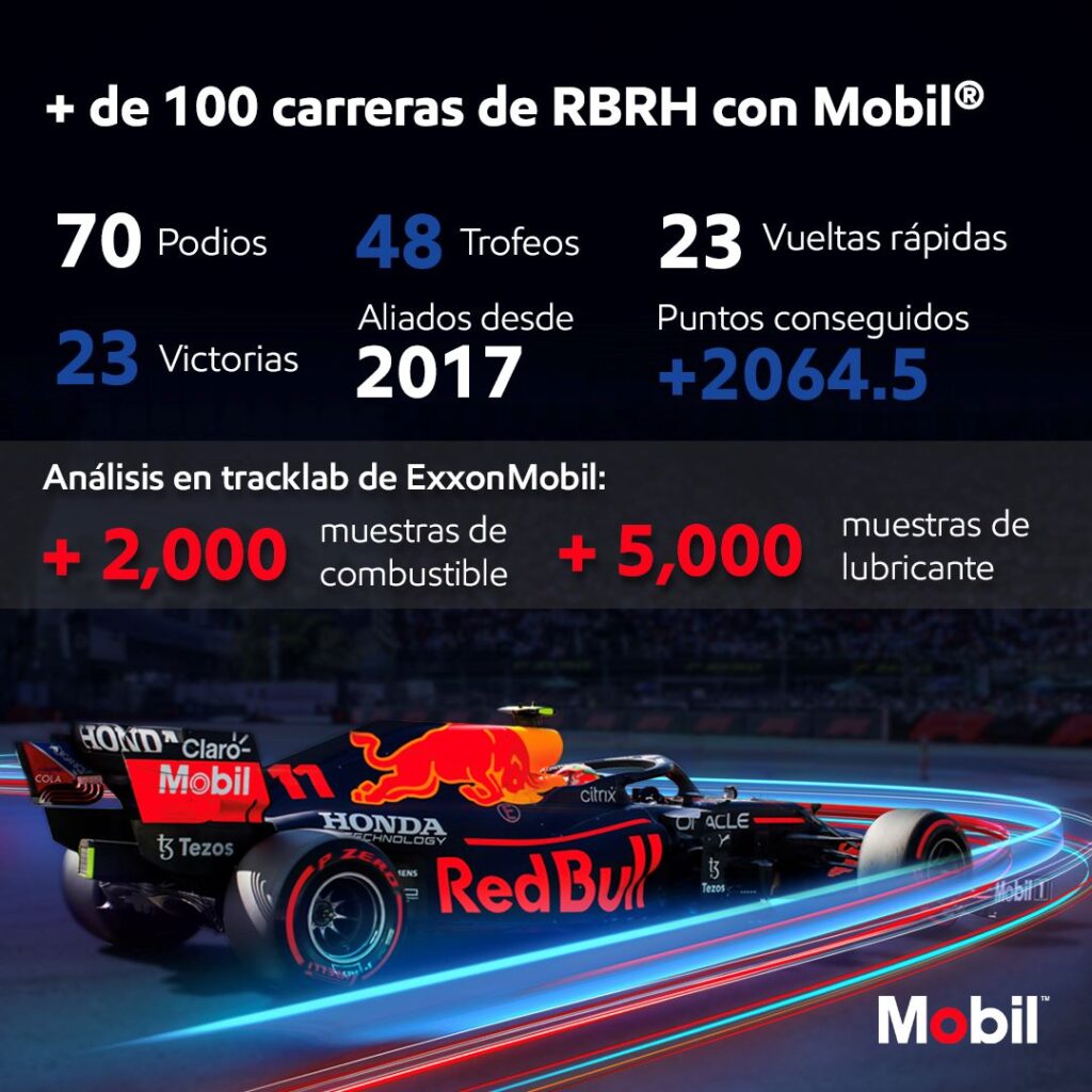 ExxonMobil celebró más de 100 carreras con la escudería Red Bull Racing Honda desde el inicio de su alianza tecnológica en 2017, año en el cual utilizaron por primera vez los combustibles Mobil Synergy y los lubricantes Mobil 1 para los monoplaza de la escudería austriaca.