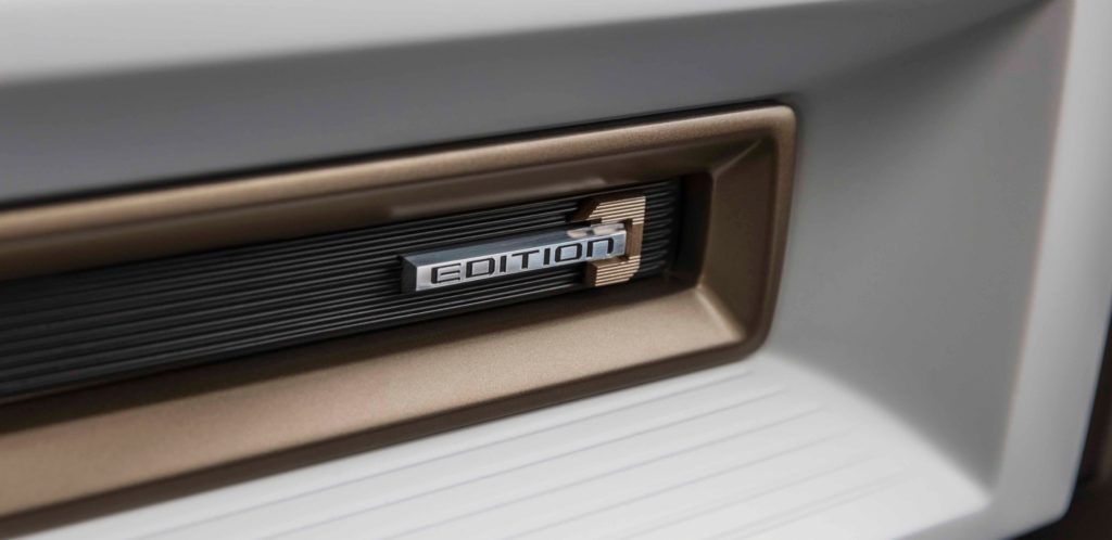 GMC Hummer Edition 1 que conserva su diseño exterior y parrilla clásica, así como la robustez en su dimensiones y capacidades. Este primer modelo presentado virtualmente, es una camioneta pick up para 4 o hasta 5 pasajeros cómodamente sentados, con su respectiva caja de carga trasera.