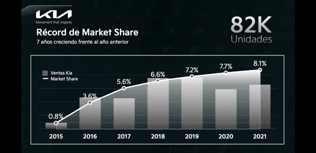 Para este año, la expectativa es el mismo con el tema de los semiconductores, y a pesar de ello, cuando la industria cayó, Kia por el contario logró colocar 7,000 unidades mensuales en promedio.