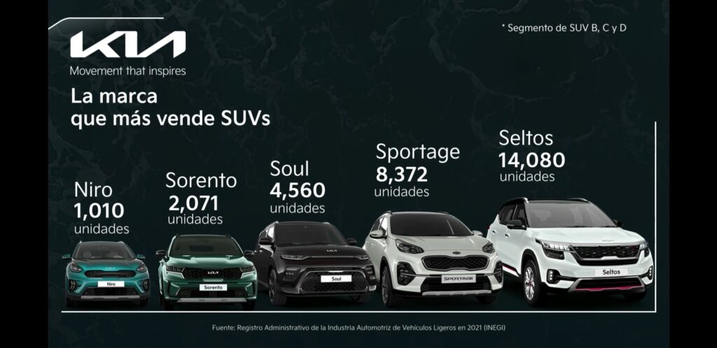 Y dentro de esas ventas, con 30,093 unidades de SUV; la camioneta Seltos por ejemplo, fue la más vendida del segmento; el modelo Río es de los más vendidos en México, y es el más producido y exportado en su segmento, dijo el ejecutivo.