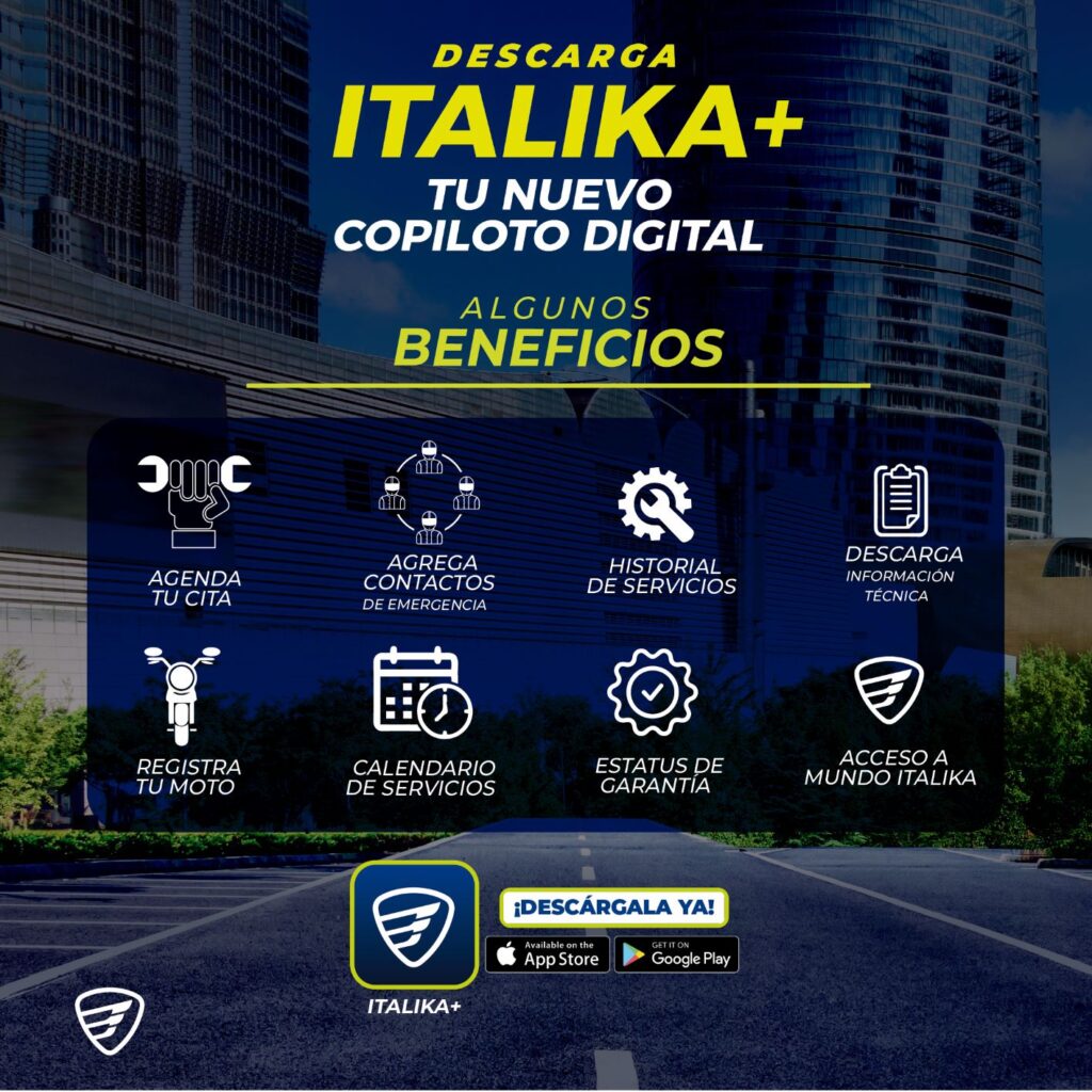ITALIKA+ es nuestra aplicación oficial, una herramienta innovadora con la que buscamos que te mantengas siempre rodando, disfrutando las grandes emociones y los enormes beneficios que solo una moto te puede ofrecer.