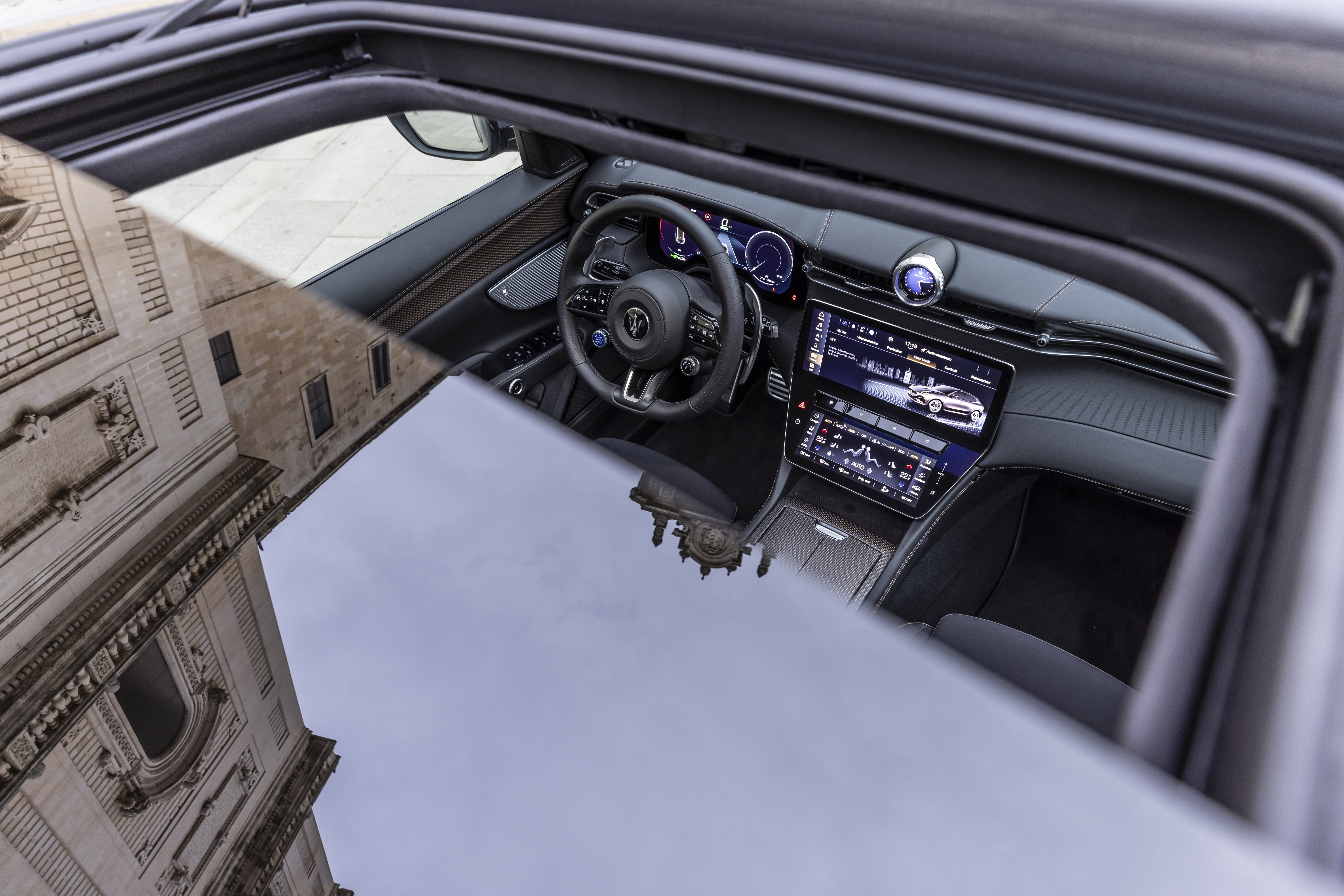 La línea Folgore cuenta con un interior que eleva la experiencia de conducción a través de una mezcla exquisita entre tradición e innovación: materiales sustentables como ECONYL® conviven con texturas de lujo, mientras que los acentos en rose gold realzan los detalles tecnológicos de una cabina envolvente, conectada y completamente enfocada al confort del conductor moderno.