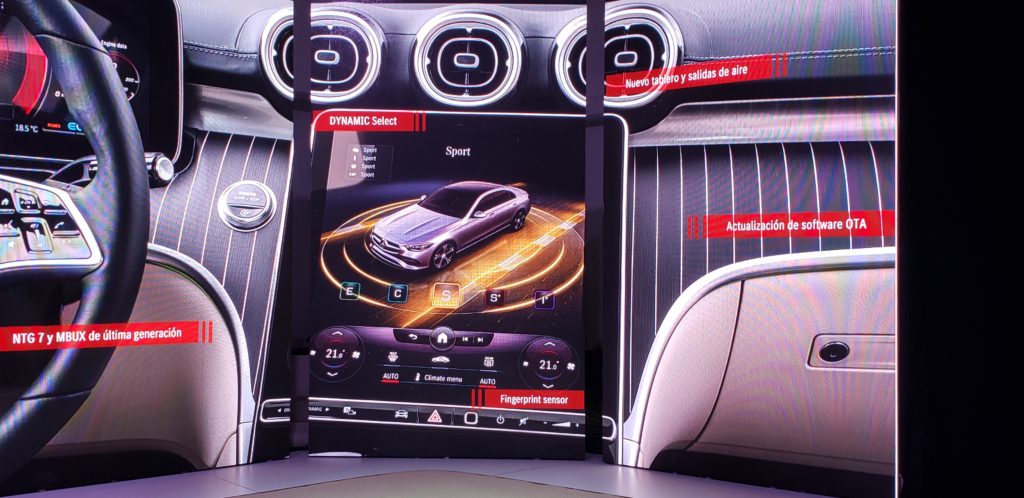 Al centro de la consola, destaca la nueva “Media Display” de 11.9’’ equipada con la última generación de MBUX (Mercedes-Benz User Experience) que aprenderá del estilo de conducción de cada uno de los perfiles completamente personalizables introducidos en el vehículo (hasta 7 diferentes) con los que se puede acceder a través del sensor de huella digital.