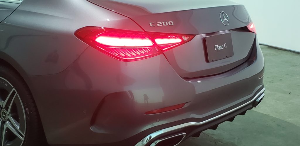 Adicionalmente, en la parte trasera, el Clase C contará por primera vez con luces traseras de dos piezas y un sistema de escape con embellecedores en cromo. Adicionalmente, destaca mayores dimensiones en el ancho de vía y longitud total del vehículo, dando una apariencia más poderosa.