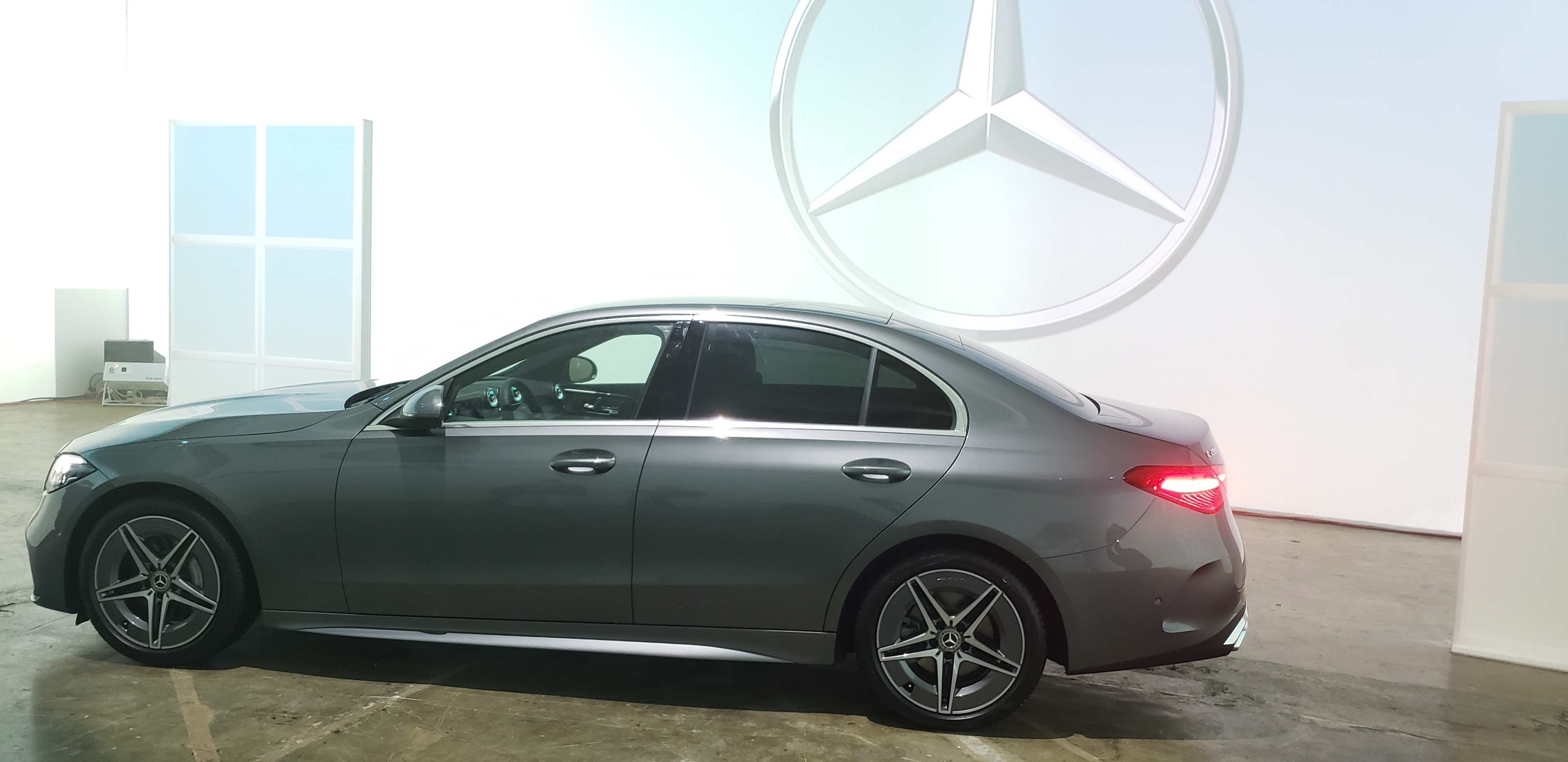 El nuevo Clase C cuenta con la línea embellecedora AMG Line en su exterior que destaca la parrilla central con efecto diamante en diseño de estrella en cromo, así como los rines AMG de 5 radios en 18’’ en color gris tremolita y tomas de aire frontales deportivas.