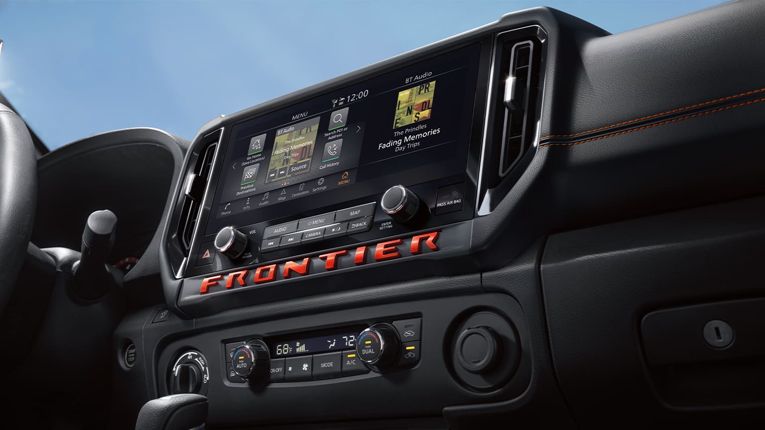Emociones rodeadas de lujo y tecnología, el interior del nuevo Nissan Frontier PRO-4X cuenta con asientos, volante y palanca de cambios forrados en piel, así como con un quemacocos eléctrico de tres posiciones.