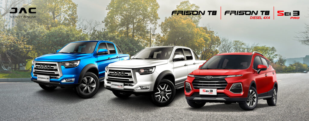 Los vehículos predilectos por los clientes en nuestro mercado durante el mes de septiembre, fueron: en primer lugar, la pickup JAC Frison T8, seguida del vehículo diseñado para el trabajo pesado, Frison T8 Diesel 4×4, en tercer lugar, la evolución de una de las SUVs, con las que JAC llegó a nuestro país en 2017, Sei3 Pro, y, en cuarto lugar, el vehículo ideal para los viajes dentro de las ciudades y lo mejor, 100% eléctrico, JAC E 10X.