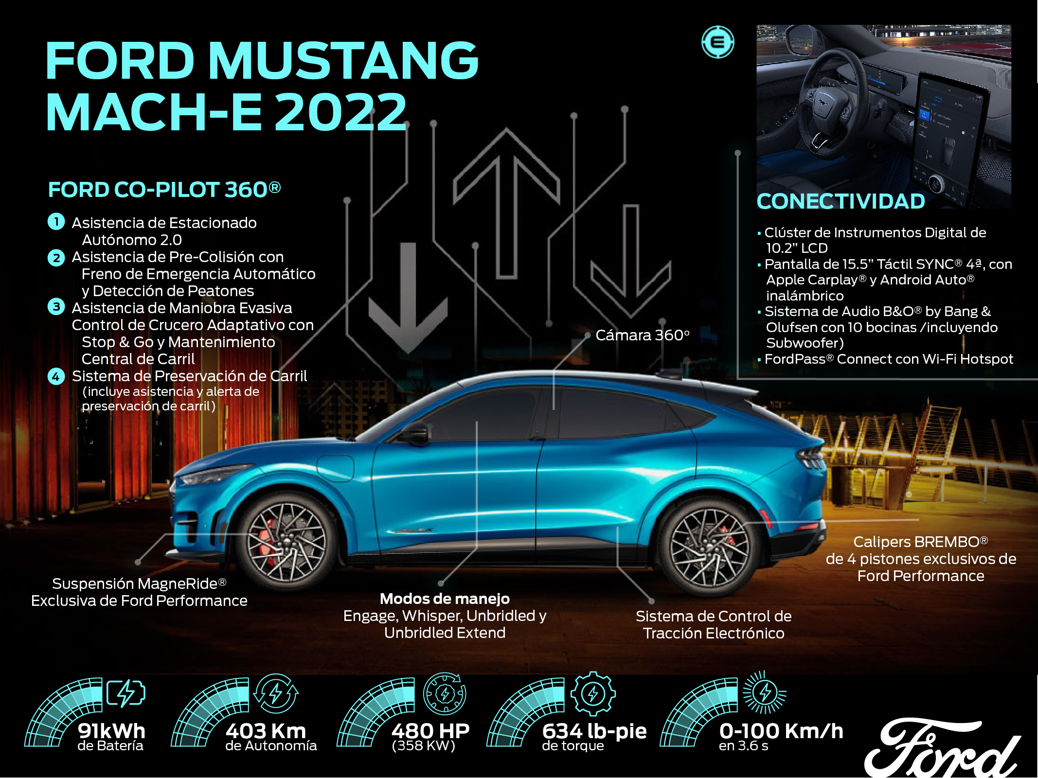 Por primera vez, los clientes experimentarán un ecosistema de carga de vehículo totalmente eléctrico diseñado internamente por Ford usando un software propio. Eso significa que el hardware del vehículo, incluidas las capacidades de carga bidireccional, proviene de un equipo integrado directamente con el que trabaja en la plataforma y en los productos del vehículo. Los clientes se beneficiarán de mejoras que reduzcan el tiempo de espera para cargar la batería, maximicen su vida útil y mejoren el costo total.
