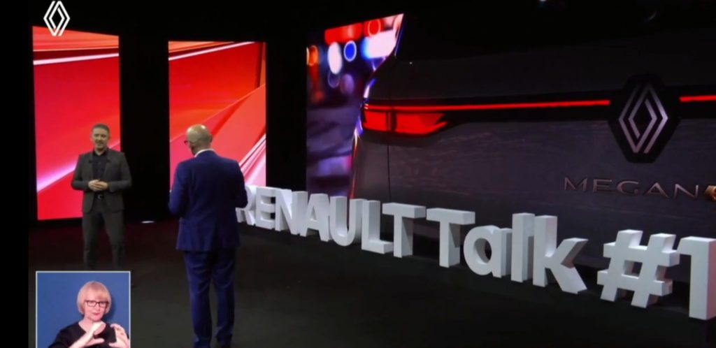 En su oportunidad, Gilles Vidal, Director de Diseño de la marca Renault, develó una imagen del logotipo tal como aparece en la parte posterior del nuevo Megane E-TECH Electric, que se comercializará en 2022.