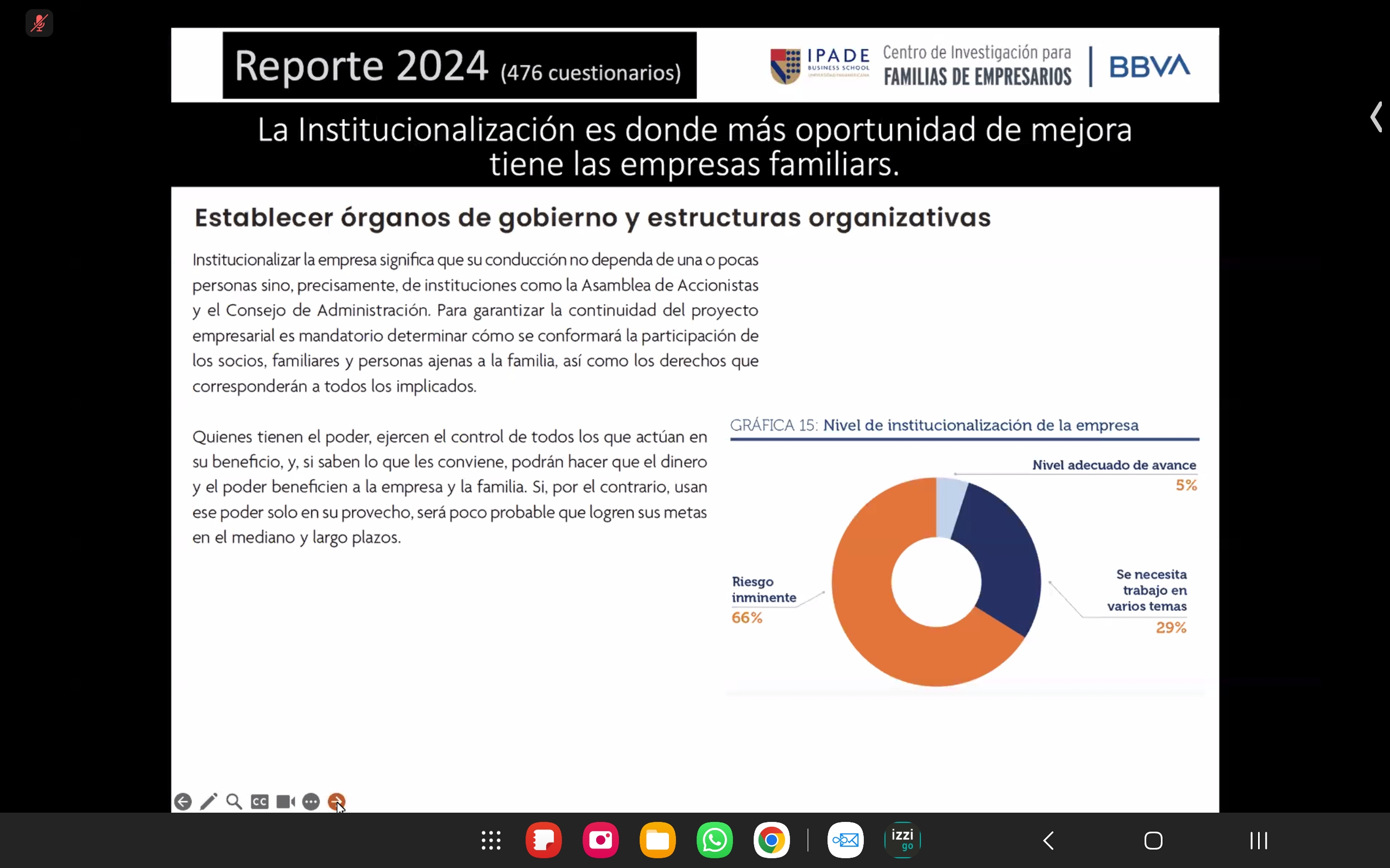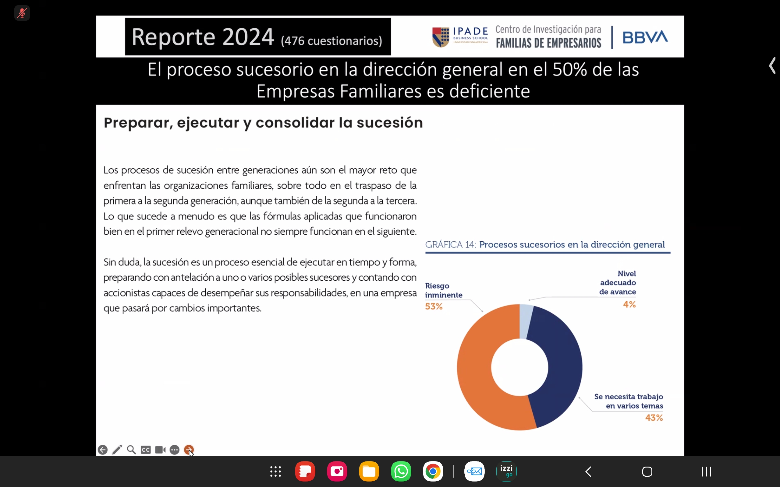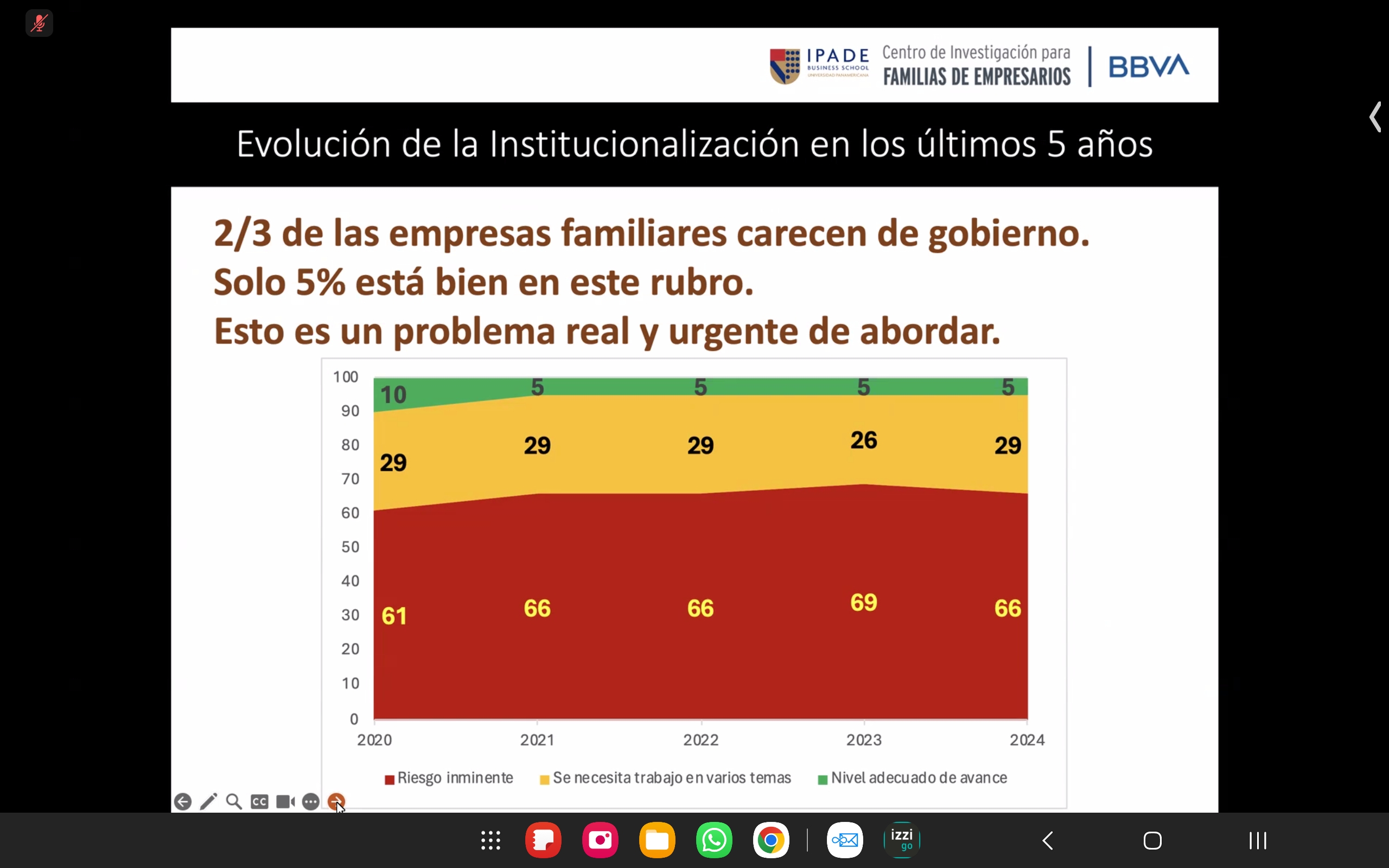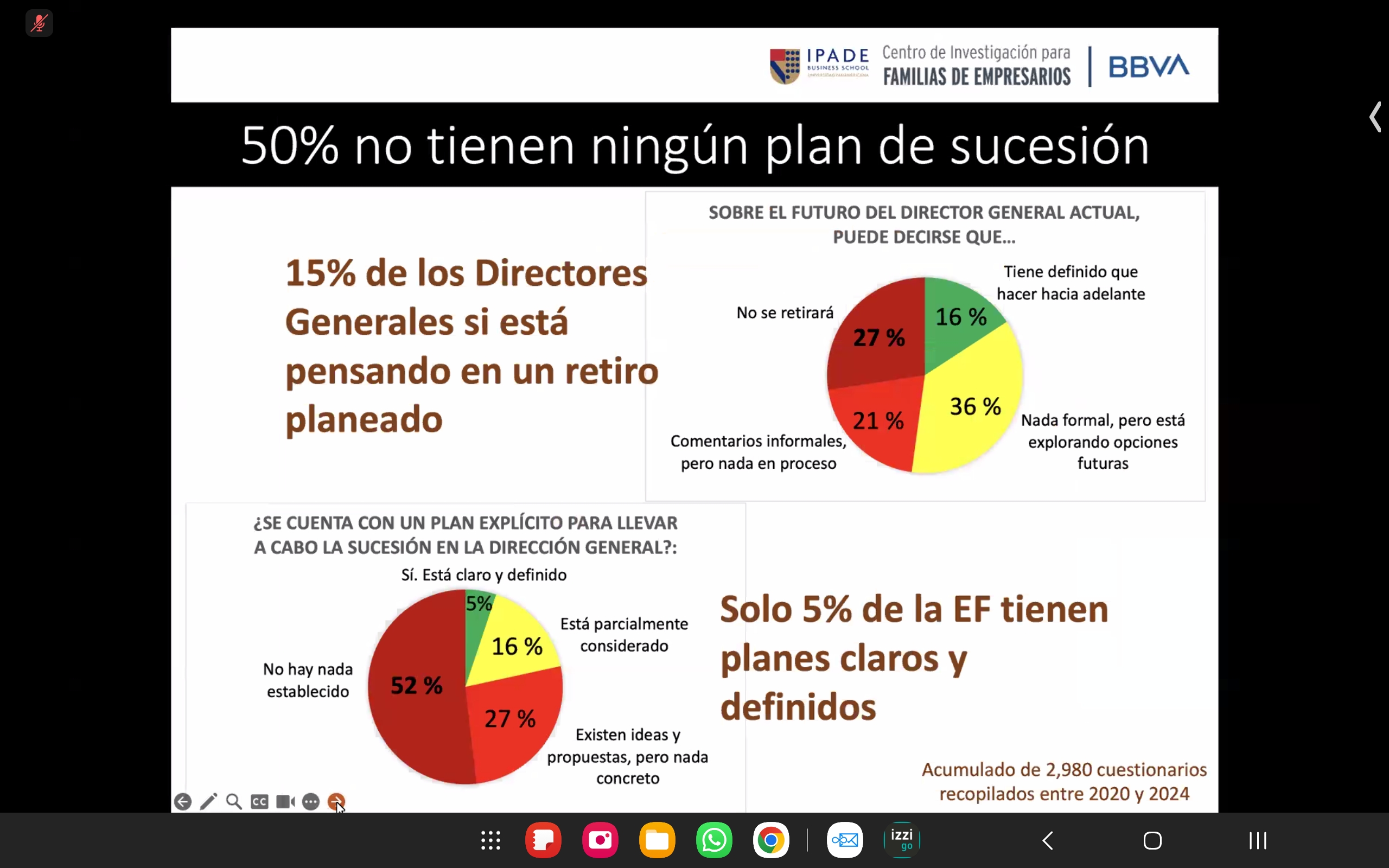 “Las empresas familiares son de una importancia incuestionable en México, ya que representan entre el 90 y el 95% de los negocios, y detectamos que su institucionalización es en donde más riesgos se anticipan, ya que solo un 5% de las empresas manifiesta estar en orden en este rubro; este es un pendiente en la mayoría de las empresas familiares que participaron”, detalló Ricardo Aparicio Castillo, director del CIFEM| BBVA.