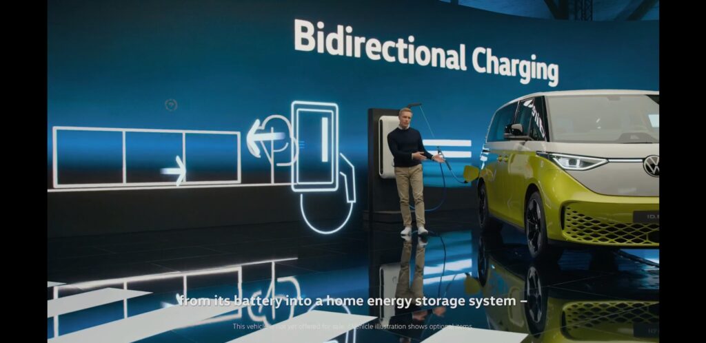 -Almacenamiento de energía: La carga bidireccional (Vehicle-to-Home) permite la integración de ID. Buzz al sistema de energía doméstica.