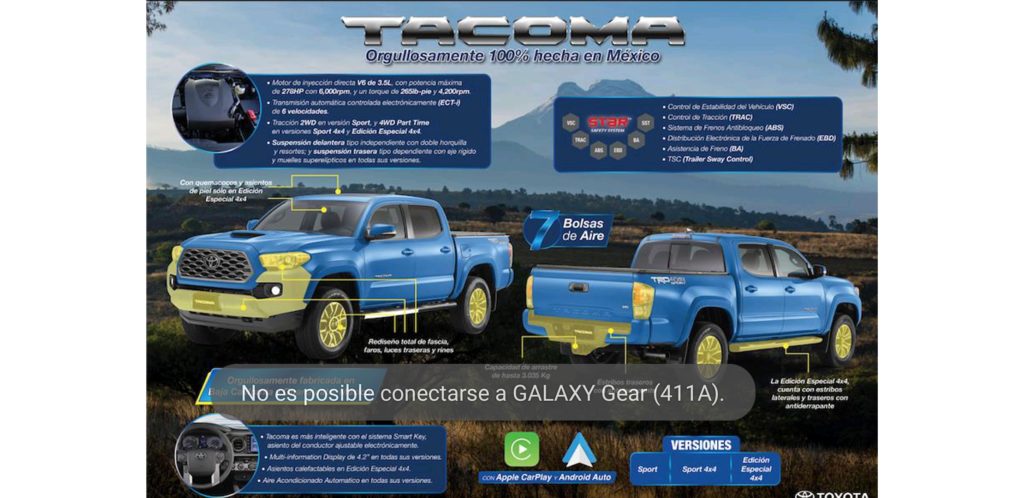 - La razón es sencilla, y es que te encontrarás con un vehículo tan útil para tu vida diaria, que levantarte temprano te será más emocionante y motivador para ir a tu trabajo o hacer cualquier otra actividad outdoor, incluso para llevarla a tu cena de aniversario. Y para acompañarte de la mejor manera a cualquiera que sea tu actividad, Tacoma 2021 mejora su conectividad, ofreciéndote un sistema de infoentretenimiento que cuenta con Android Auto y Apple CarPlay, además de una nueva pantalla de 8” y 6 bocinas. Sin duda tu música favorita también te mantendrá motivado mientras estas tras el volante de Tacoma.